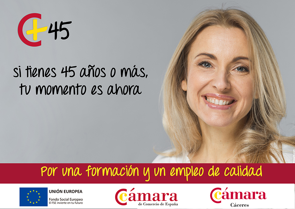 La Cámara Comercio de la provincia de Cáceres refuerza su propuesta formativa con el inicio de nuevos cursos presenciales y online para la formación de desempleados de entre 45 y 60 años, en el marco del Programa +45.