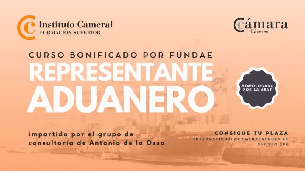 La Cámara de Comercio de Cáceres ha abierto el plazo de inscripción para la quinta edición del curso de Representante Aduanero, formación especializada dirigida a profesionales y empresas que deseen ampliar sus competencias en el ámbito del comercio exterior y la gestión aduanera.
