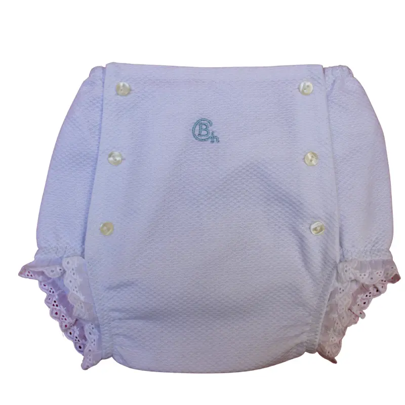 Este cubrepañal bebé blanco está confeccionado en algodón suave, ideal para mantener la comodidad del bebé en el día a día. Pertenece a la colección Londres de Chocolat Baby. Es ideal para combinar con los faldones de la marca que también encontrarán nuestra web a precios de escándalo. Confeccionado en color blanco con bordado en celeste y decorado con detalles de puntilla blanca en las piernas, aporta un toque clásico y elegante. Su diseño abotonado en la parte delantera y su cintura elástica garantizan un buen ajuste para que su bebé pueda seguir gateando, caminando y explorando con total comodidad.