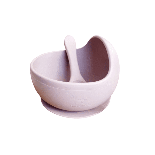 Cuenco de silicona con ventosa y cuchara – Rosa suave