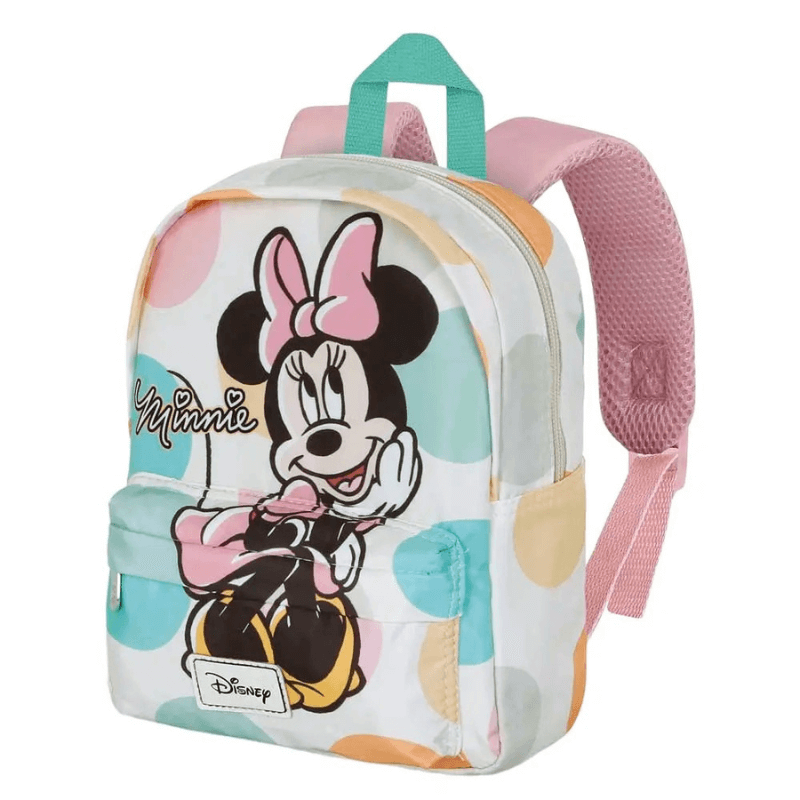 Mochila preescolar ligera Disney Minnie Mouse Balls con diseño multicolor y estampado de Minnie. Incluye bolsillo frontal, cierre con cremallera y trasera acolchada transpirable para mayor comodidad.