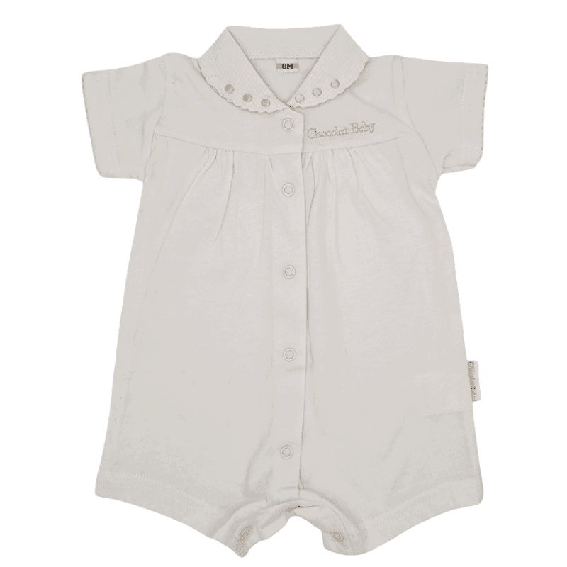 Pijama de verano de Chocolat Baby confeccionado en algodón 100%, suave y cómodo para la piel delicada del bebé. Diseño en color blanco con botones frontales para facilitar el cambio.