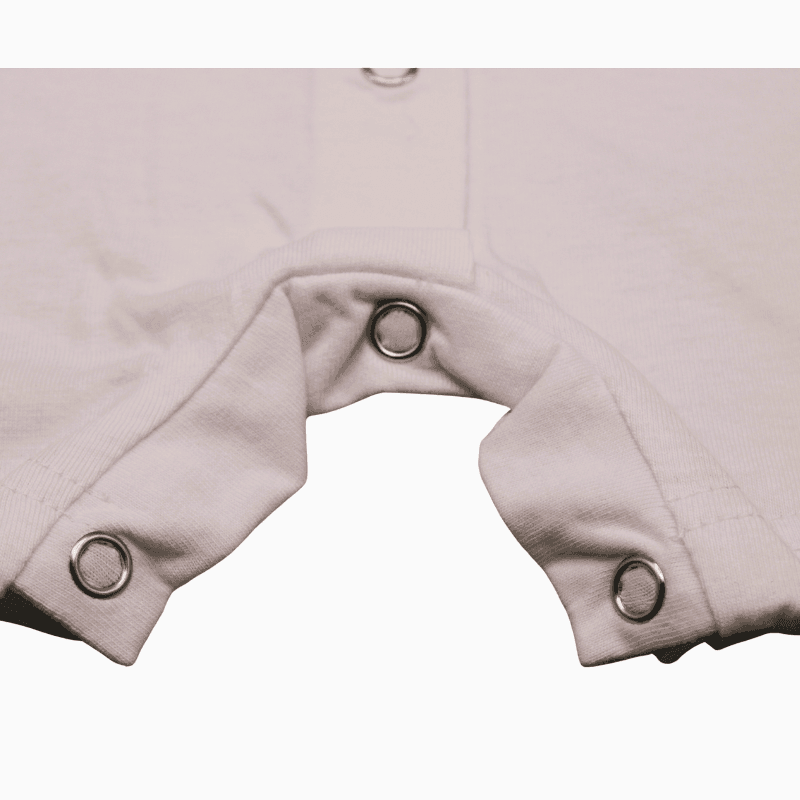 Este pijama tiene un corte tipo pelele, de una sola pieza, que cubre el cuerpo del bebé de forma holgada y cómoda. Cuenta con apertura frontal abotonada y cierre inferior con corchetes, facilitando el cambio de pañal y el vestido sin molestias. Su patrón está diseñado para ofrecer libertad de movimiento y un ajuste adecuado sin oprimir.