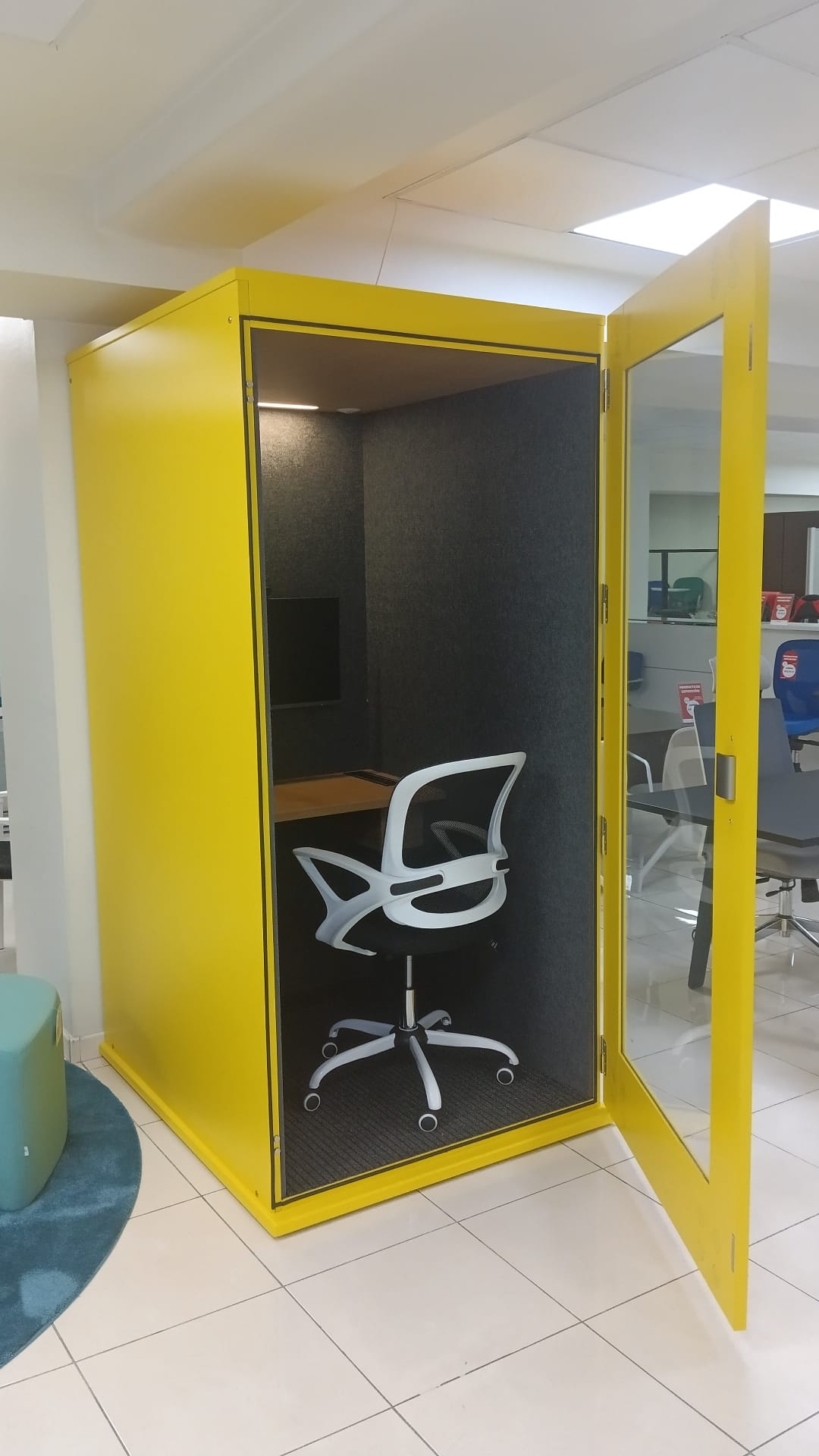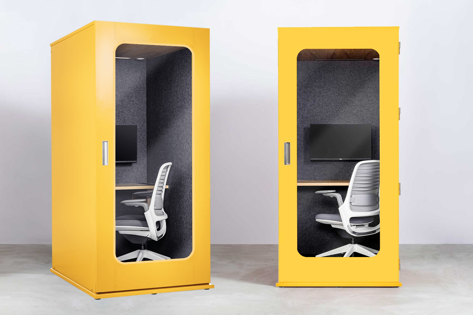 Consultanos por la selección de Phone booth en stock con entrega rápida. La personalización de las cabinas insonorizadas es muy amplia con más de 1.000 colores diferentes y configuraciones para cada uso, pero tambien disponemos de un amplio stock permanente en Madrid de los modelos y colores más utilizados por nuestros clientes