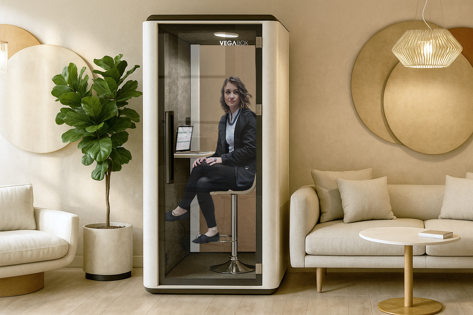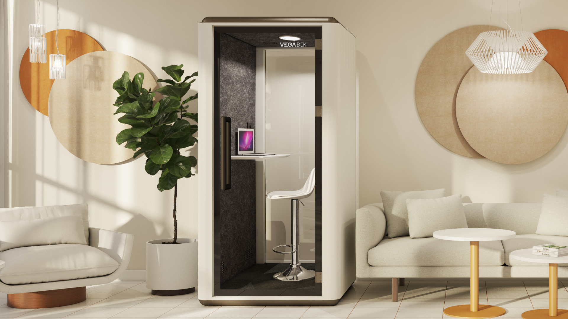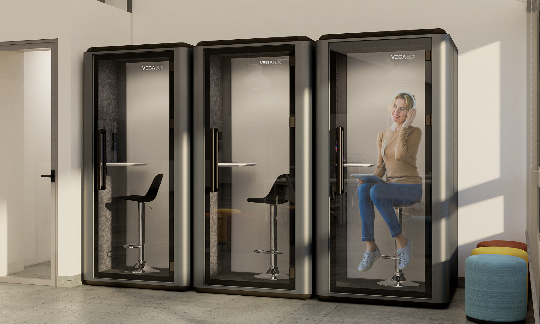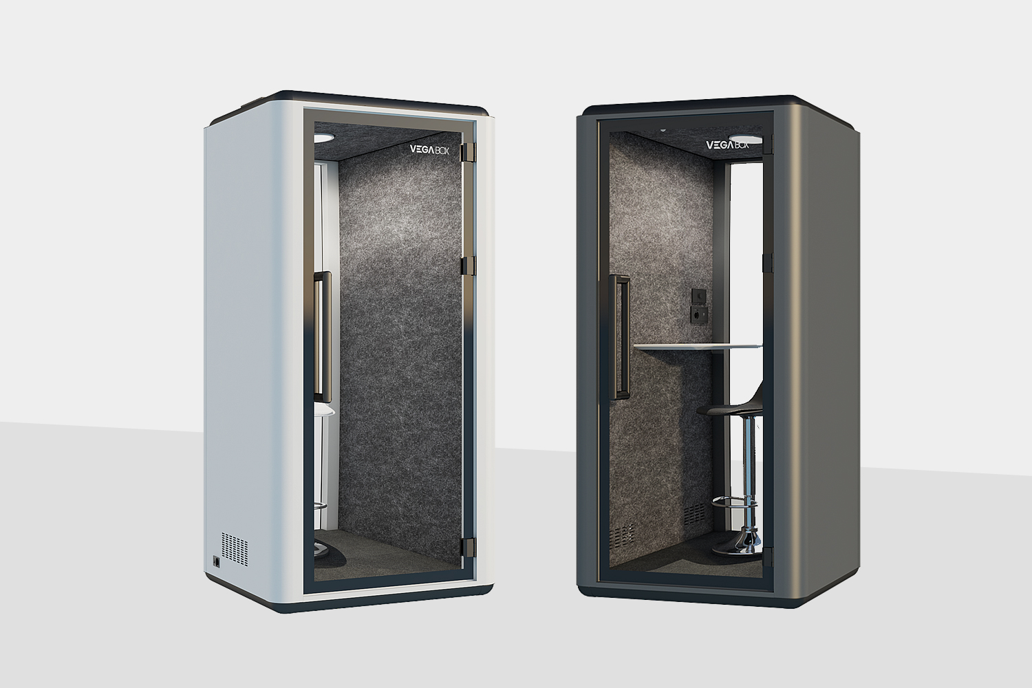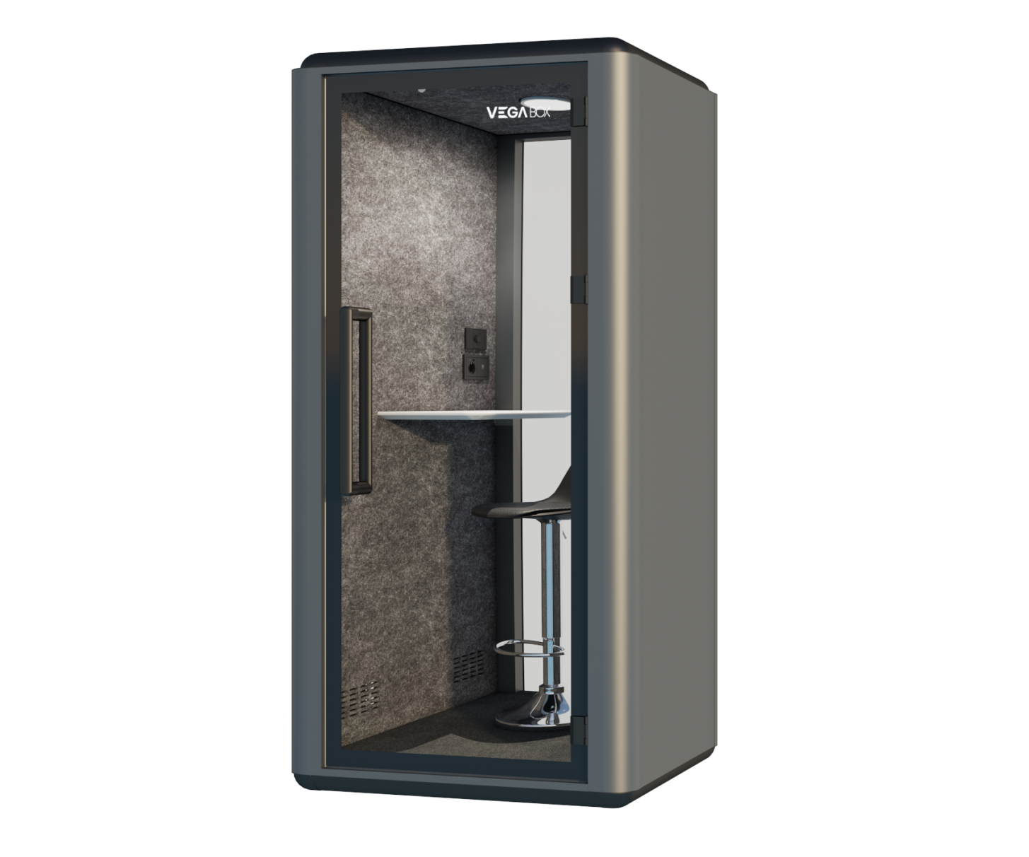 VEGA ofrece un espacio tranquilo para realizar llamadas telefónicas importantes o trabajar en tareas que requieren concentración. Completamente equipada con todos los accesorios que puedas necesitar, diseño de última generación de aspecto moderno, muy funcional, se adapta a cualquier entorno y es más económica que la mayoría de cabinas telefónicas del mercado.