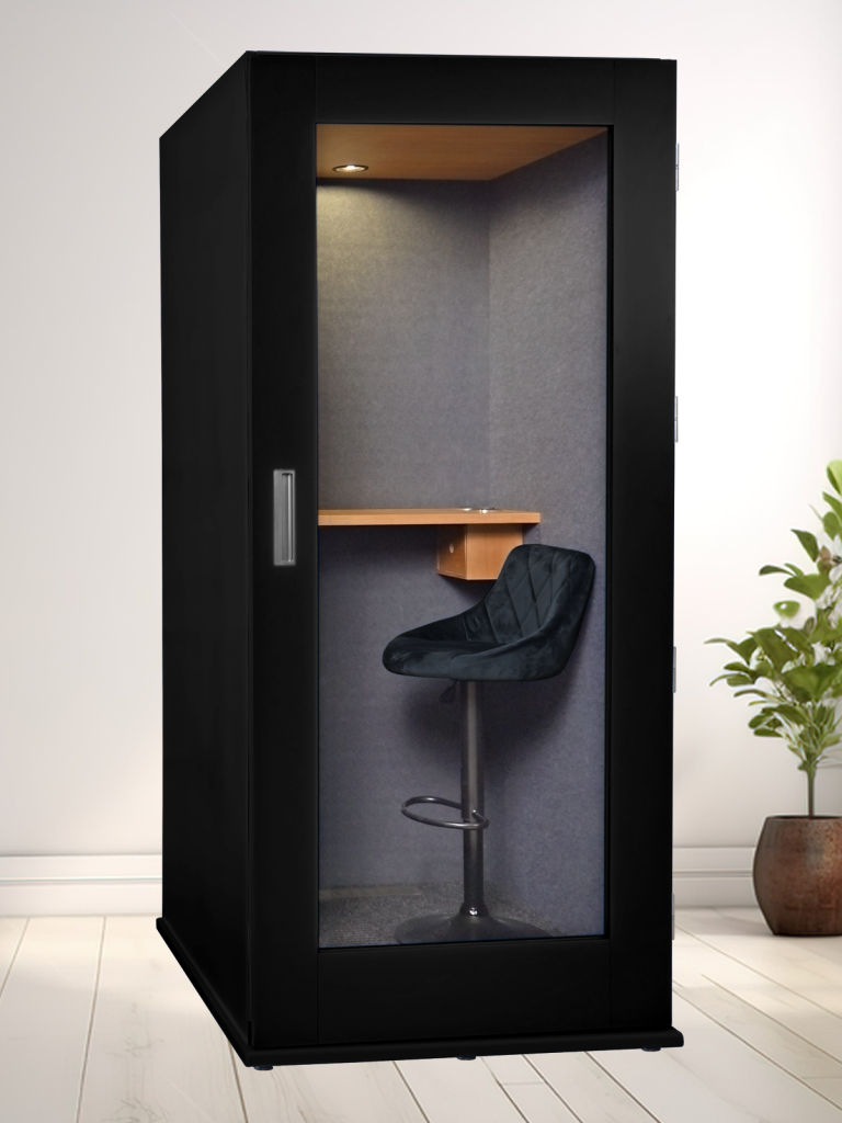 La cabina de trabajo insonorizada Mute 150 es el lugar perfecto en la oficina para trabajar concentrado o realizar reuniones por video llamada, su tamaño admite trabajar en una silla de oficina.