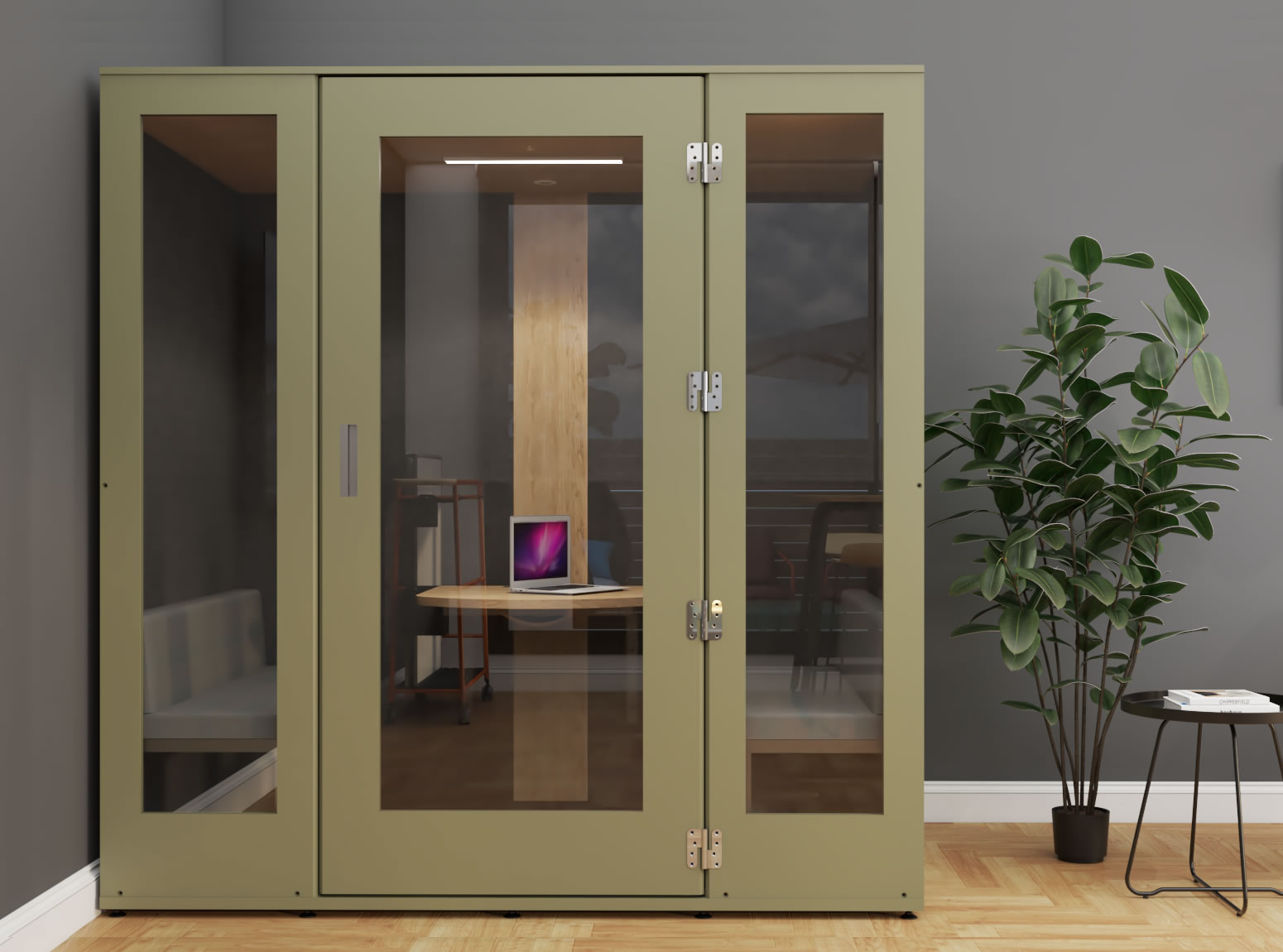 La cabina insonorizada para reuniones VEGA 4 es el lugar perfecto en la oficina para recibir a clientes, realizar reuniones de hasta de 4 personas o trabajar concentrado.