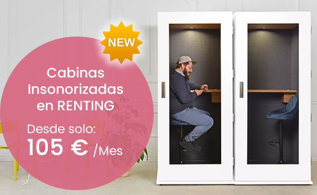 Con el renting, puedes disponer de cabinas insonorizadas en la oficina sin necesidad de acumular activos inmovilizados cuando sabes de antemano que el uso será temporal o porque prefieres no realizar una inversión previa y prefieres un pago fijo fraccionado mes a mes.