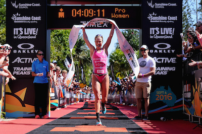SUNSHINE COAST, AUSTRALIA - SEPTEMBER 04: Holly Lawrence of United Kingdom celebrates winning the Ironman 70.3 World Championship on September 4, 2016 in Sunshine Coast, Australia. (Photo by Matt Roberts/Getty Images)