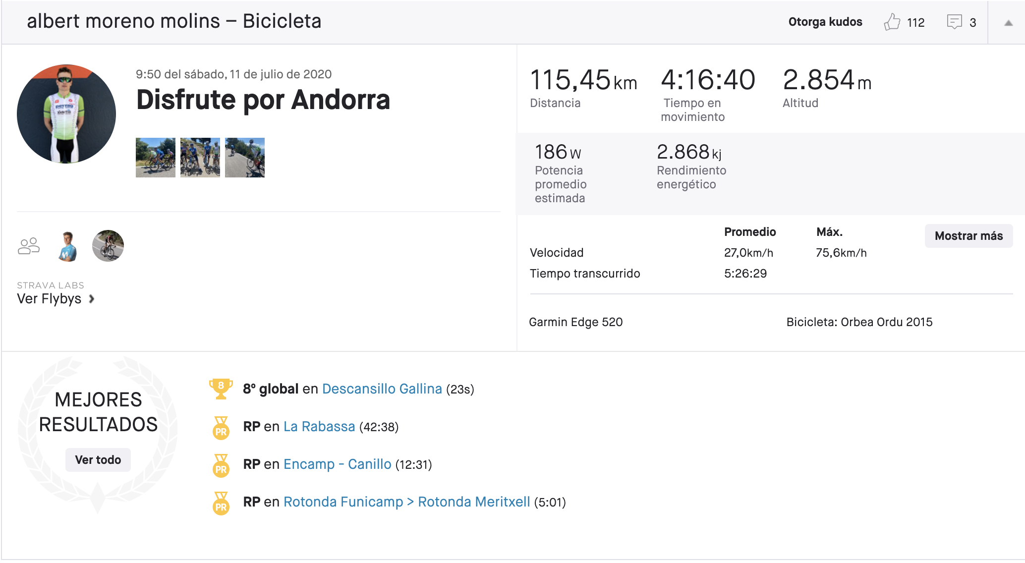 La Rabassa y La Gallina como platos fuertes del día de Albert Moreno por Andorra, que como muchos otros triatletas, está aprovechando el momento de temporada para rodar con los mejores especialistas del mundo.