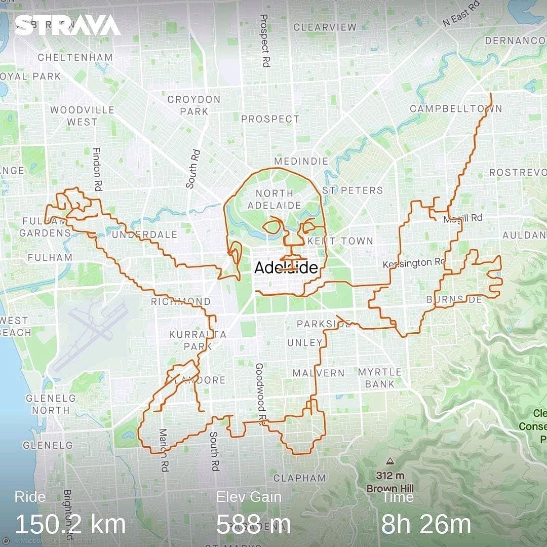 Hay quien busca KOM’s o QOM’s, PR o incluso “Kudos” pero este ciclista y diseñador estadounidense ha ido un paso ,más allá, o mejor dicho…150 kilómetros más allá para dejan en STRAVA esta obra de arte.