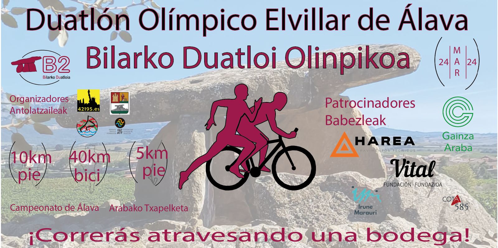 El duatlón, que se celebrará el 24 de marzo por la mañana, en la localidad de Rioja Alavesa de Elvillar contará con varios puntos fuertes en cada uno de sus recorridos.