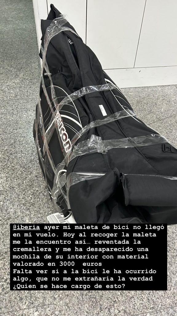 Tal y como denuncia el deportista de Inverse en sus redes, ha podido recuperar su maleta de bici tras una jornada desaparecida. Sin embargo, junto a ella no se hallaba una mochila con material valorado en 3000€. El reciente fichaje de BMC no podía evitar su cólera y públicamente se preguntaba “Quién se hace cargo de esto?”.