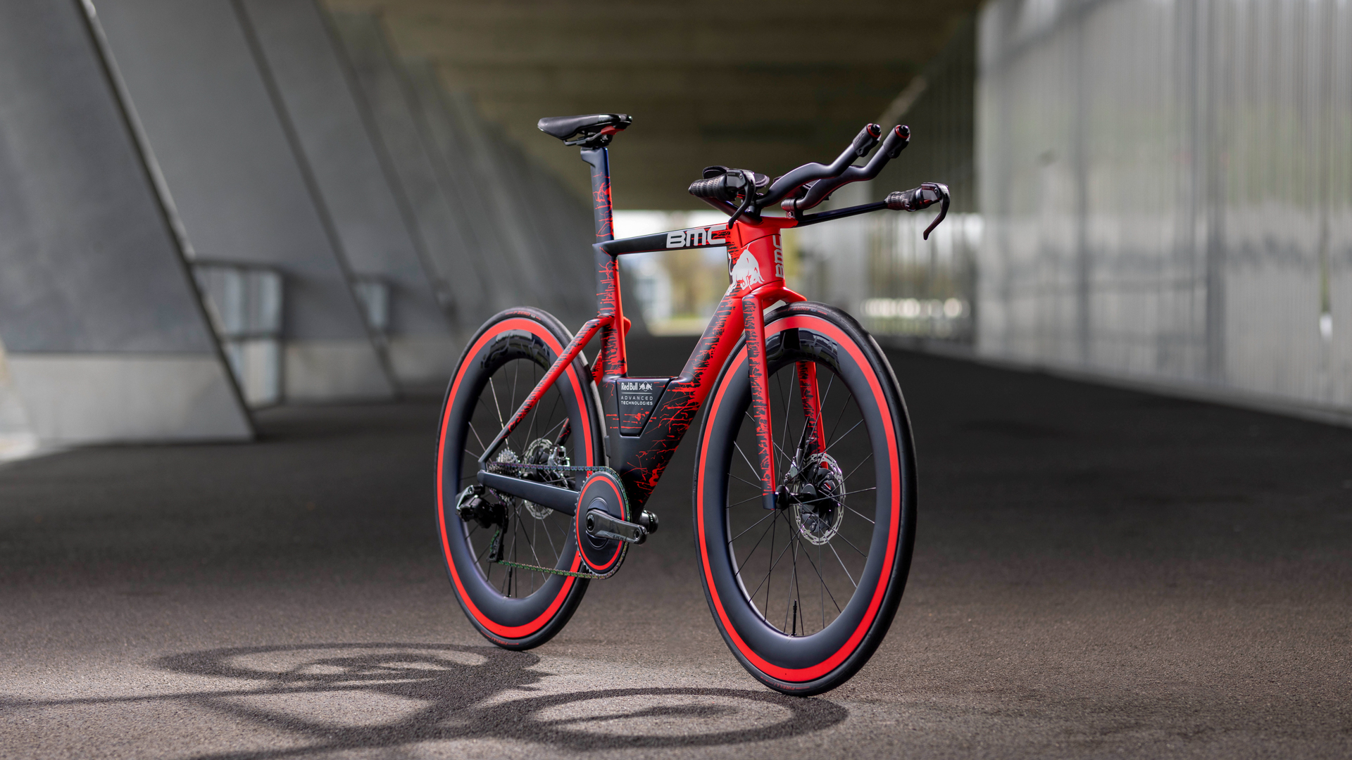Ni BMC ni RedBull han querido dar detalles exactos sobre esta bici, pero destaca la horquilla –no tan extrema como la Shiv–, así como el pedalier maximizado como ocurre en la Cube, por ejemplo. Por lo demás, no dista demasiado de otras marcas, que también optan por un tubo superior bastante largo. En el caso de la bici de triatlón, el pedalier es aún más grande, llegando a llenar casi la mitad del espacio libre entre el cuadro, así como la incorporación de un alerón tipo Shiv, dónde se podrían almacenar útiles.