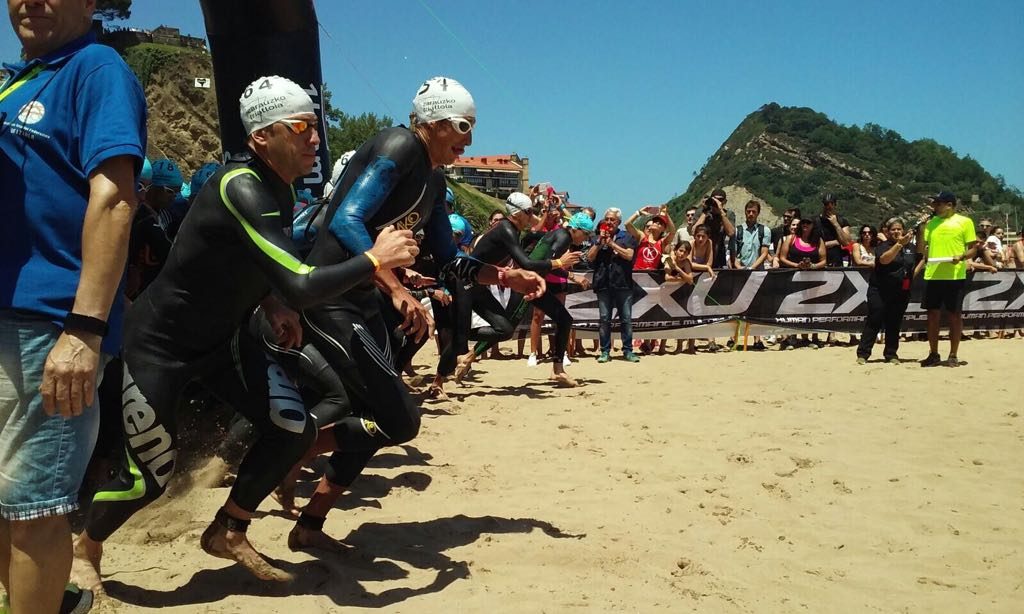 A las 2 de la tarde empezó el espectáculo con la salida femenina. El elenco de triatletas que se postulaban para llevarse la txapela no dejó indiferente a nadie, el espectáculo estaba servido. Y es que el intercambio de posiciones entre las triatletas fue constante. La local Helene Alberdi fue la más rápida en completar el primer sector a nado. Sin embargo, sus rivales la persiguieron muy de cerca. La catalana Judith Corachán la seguía a solamente 1 minuto, y un poco más atrás se acercaron la venezolana Joselyn Brea y la gallega Saleta Castro.