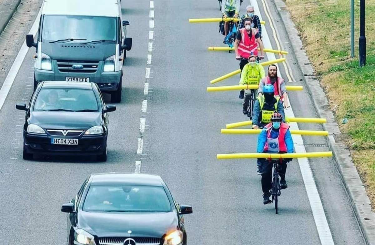 Está claro que no hay competiciones y las noticias se tornan en ocasiones anécdotas para ocupar el tiempo libre de nuestros lectores mientras no entrenáis, ¡ya lo sabemos! 😁. En este caso, la “noticia” no sabemos si se trata de una actividad real o una jornada de reivindicación sobre la seguridad de los ciclistas en carretera pero lo cierto es que esta imagen está dando la vuelta al mundo y, por si aún no te llegó en ningún grupo de whats app, se está volviendo viral.