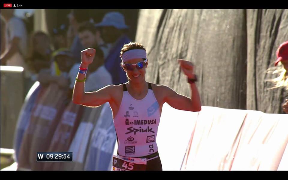 “Día muy duro ayer en IM Sudáfrica. No todo sale siempre como uno lo tiene planeado. El día fue un infierno desde que me metí en el agua y me perdí, no se veía nada y me quedé sola en tierra de nadie, parándome mil veces para ver dónde estaban la boyas. En bici un dolor de piernas que no entendía, ni siquiera en los peores entrenos, calor, aire y la maldita carretera llena de baches. Iba bien a ratos, pero ya había perdido mucho tiempo. Corriendo dolor de piernas desde el minuto 1, estuve tratando de mantener un ritmo decente todo el tiempo que pude hasta que la musculatura dijo hasta aquí. Desastre de carrera sí, y más yendo en pro. Esto no es fácil, pensé en retirarme mil veces, pero ya sabéis que eso no va conmigo. Pero bueno, borrón y cuenta nueva, sé que estamos haciendo las cosas bien y tarde o temprano darán sus frutos. Toca seguir trabajando duro”