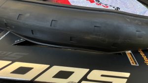 Este neumático ha sido diseñado con cavidades aerodinámicas especiales en el dibujo de la banda de rodadura que actúan como generadores de vórtices. Estos generadores crean un flujo de aire turbulento en la superficie, permitiendo que el aire se adhiera a la forma del borde de la rueda delantera. El resultado es una maximización del efecto de vela al retrasar la separación del flujo del borde, logrando el sistema de neumático y rueda aerodinámico definitivo.