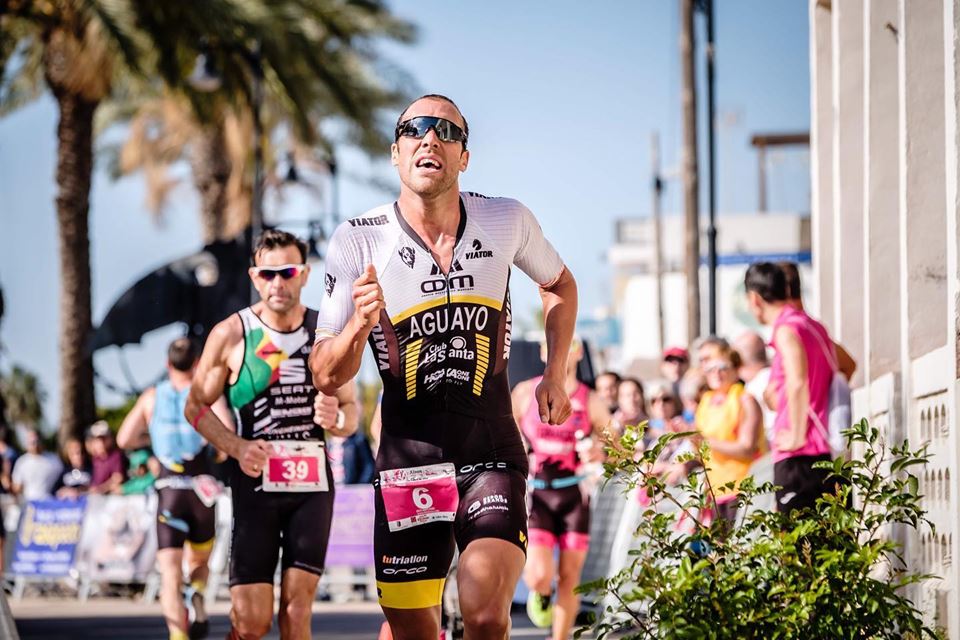Emilio Aguayo que hizo un gran sector ciclista y completamente en solitario al perder el grupo con el que salió en la natación antes de llegar al km 60, llegó a T2 en 6º posición pero a más de 14’ de cabeza de carrera.