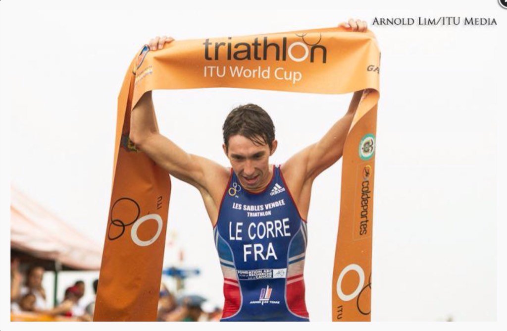 En categoría masculina la carrera estuvo marcada por las durísimas condiciones que se sucedieron tras el sector de ciclismo. Una intensa lluvia provocó inundaciones en el circuito y el fuerte viento caídas de vallas de protección. Aún así, la competición continuó. El suizo Sven Riederer acabó segundo y el francés Dorian Coninx, tercero, acompañando a su compatriota Pierre Le Corre, que se situó en lo más alto del podio.