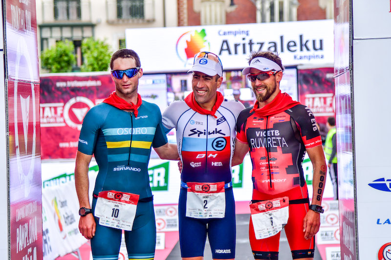 Finalmente, con un tiempo de 3 horas y 44 minutosEneko Llanosse proclamaba vencedor del V Half Triathlon Pamplona Iruñamientras que Pello Osoro cruzaba la meta 5 minutos más tarde y la lucha por la tercera plaza daba con Joan Ruvireta en el podio con un tiempo final de 3 horas y 50 minutos.