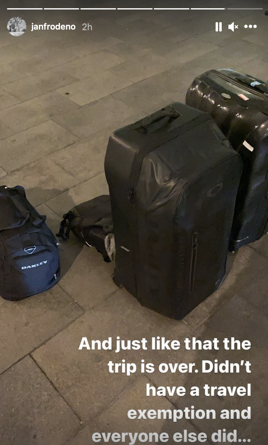 Es la noticia más loca que oiréis en mucho tiempo de Jan Frodeno. A uno de los principales favoritos de ganar el Challenge Miami se le ha negado la entrada esta mañana a los Estados Unidos, noticia que ha compartido con el mundo esta mañana en su Instagram @janfrodeno. El deportista alemán ha subido un par de fotos en sus “stories” donde se ve su equipaje con una pequeña nota: “Y así se acabó el viaje. No tenía una exención de viaje como todos los demás”.