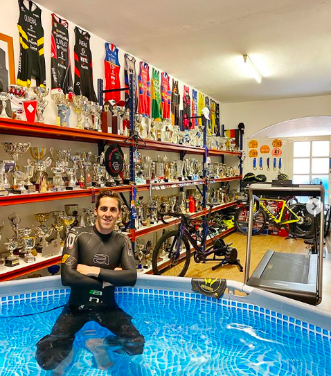 Los profesionales al deporte tienen los mismos problemas para entrenar que los aficionados, con el agravante que su rendimiento físico es lo que les llena la nevera. Hay algunas excepciones, como la de Jan Frodeno que puede disfrutar de una piscina exterior en su casa, o la del catalán Erik Merino que aunque con limitaciones puede practicar la carrera a pie y la natación dentro de su propiedad. No obstante, la mayoría entrena como buenamente puede, en espacios reducidos y material limitado, eso sí, con toda la ilusión del mundo y apretando bien fuerte los dientes. Os dejamos con esta galería fotográfica en la que seguro que muchos de vosotros y vosotras os veis reflejados.