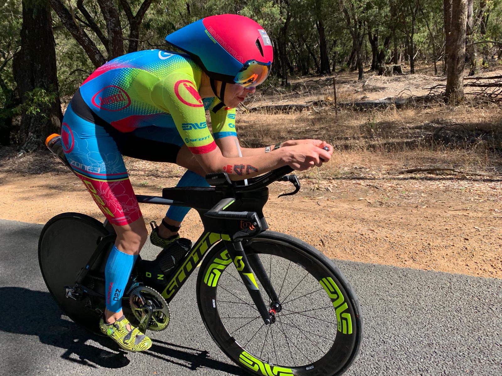 En los primeros kilómetros de bici, Adam ampliaba su renta con un grupo de 4 perseguidoras, con Gurutze marchando a más de 10′ de cabeza de carrera.
