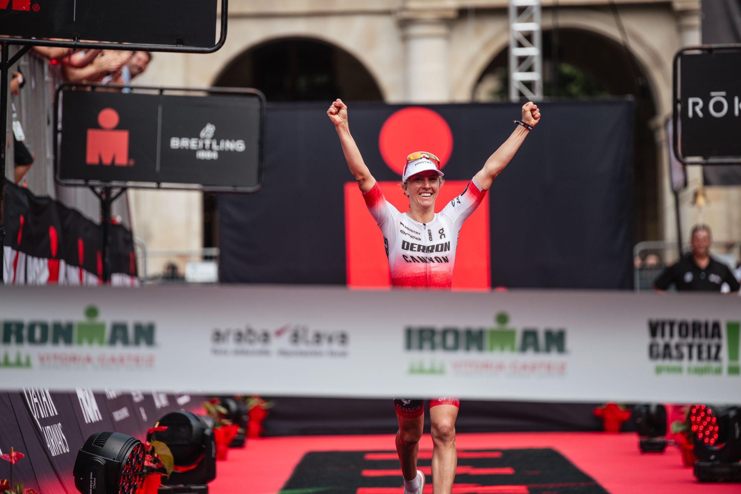 En los 42 kilómetros a pie, Derron no aflojó. Su parcial de 2:51:30 fue la confirmación de un dominio aplastante de principio a fin. Cruzó la meta entre los aplausos del público vitoriano, con casi 38 minutos de ventaja sobre la segunda clasificada, la británica residente en Dubái Lottie Lucas (8:59:42). El podio lo completó la francesa Marjolaine Pierré (9:04:00).
