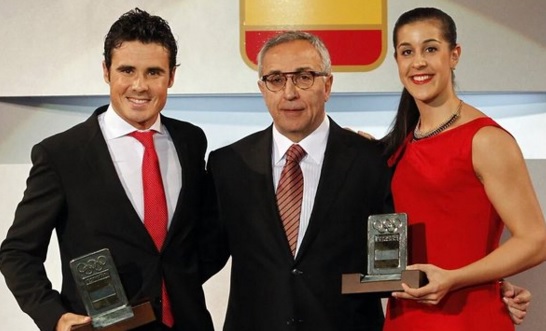 El triatleta gallego Javi Gómez Noya ha sido reconocido este martes con el Premio Deportista Destacado de 2015 de la mano del Comité Olímpico Español en la Gala del COE, celebrada en Madrid. El cinco veces campeón del mundo de triatlón ha compartido el premio con la jugadora de bádminton Carolina Marin. “Agradecido por recibir el premio al mejor deportista del año por el @COE_es junto a @caro_marin2 en Madrid” escribía el gallego en su cuenta de Twitter.