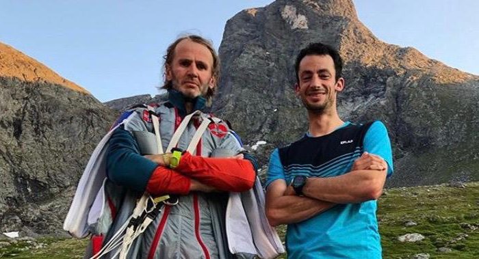Por su parte, Heimen subió en sentido opuesto a Jornet, andando y trepando por las rocas del Romsdalshornet, para lanzarse con su traje de alas desde la cima.
