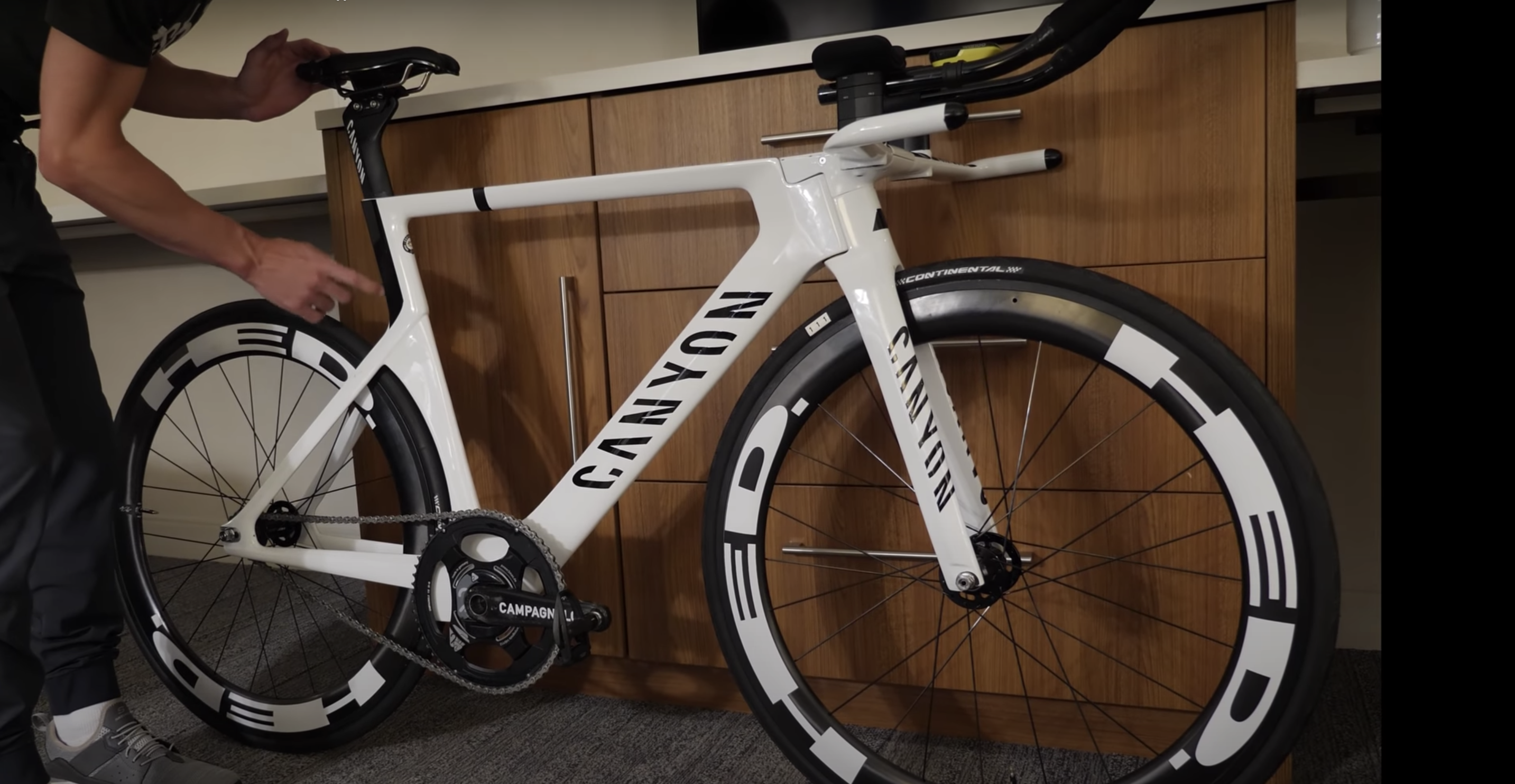 La bicicleta es un cesión de Canyon, directamente del hall of fame dónde se guardan las bicis que han conseguido algún logro. En el caso de la bici de Sanders, se trata de una de las bicis que se configuraron en su día para el británico Alex Dowsett, que voló a 52,93km/h durante los 60 minutos que dura el evento.