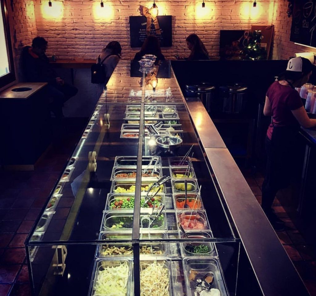 Nada más entrar toparéis de frente con un mostrador lleno de ingredientes a elegir. La primera elección empieza en saber si vais a optar por la opción Small o Large.