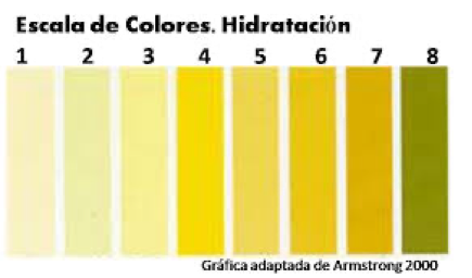 El ejercicio y una mala hidratación produce una disminución y concentración de la orina (eliminando iones de socio, potasio y cloro). En la orina, además, puede haber la presencia de hematíes, señal que los riñones pueden estar afectados. El color de la orina es un indicativo sobre nuestra correcta hidratación. A medida que el color de la orina se va oscureciendo peor es nuestra hidratación.