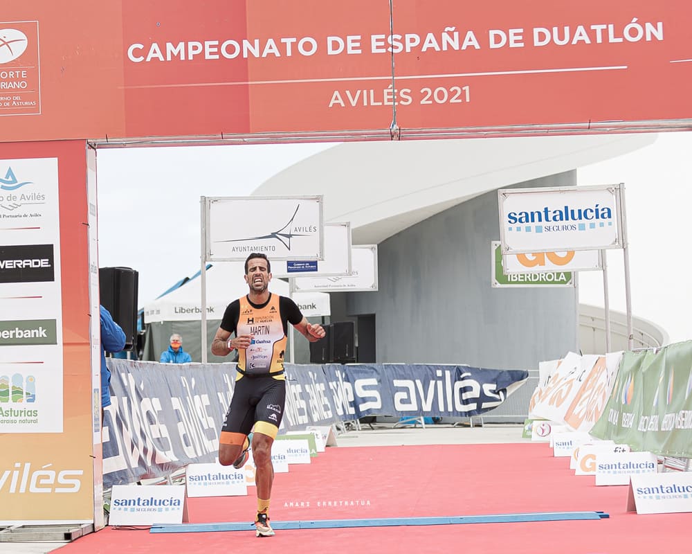 Emilio Martín, del Montilla Córdoba Triatlón, consiguió la victoria y el título de campeón de España de Duatlón 2021. El onubense Emilio Martín logró con brillante autoridad otro título de campeón de España, con un tiempo de 56:15. El bicampeón mundial de duatlón en 2012 y 2015 y campeón europeo en 2017 se mostró inalcanzable.