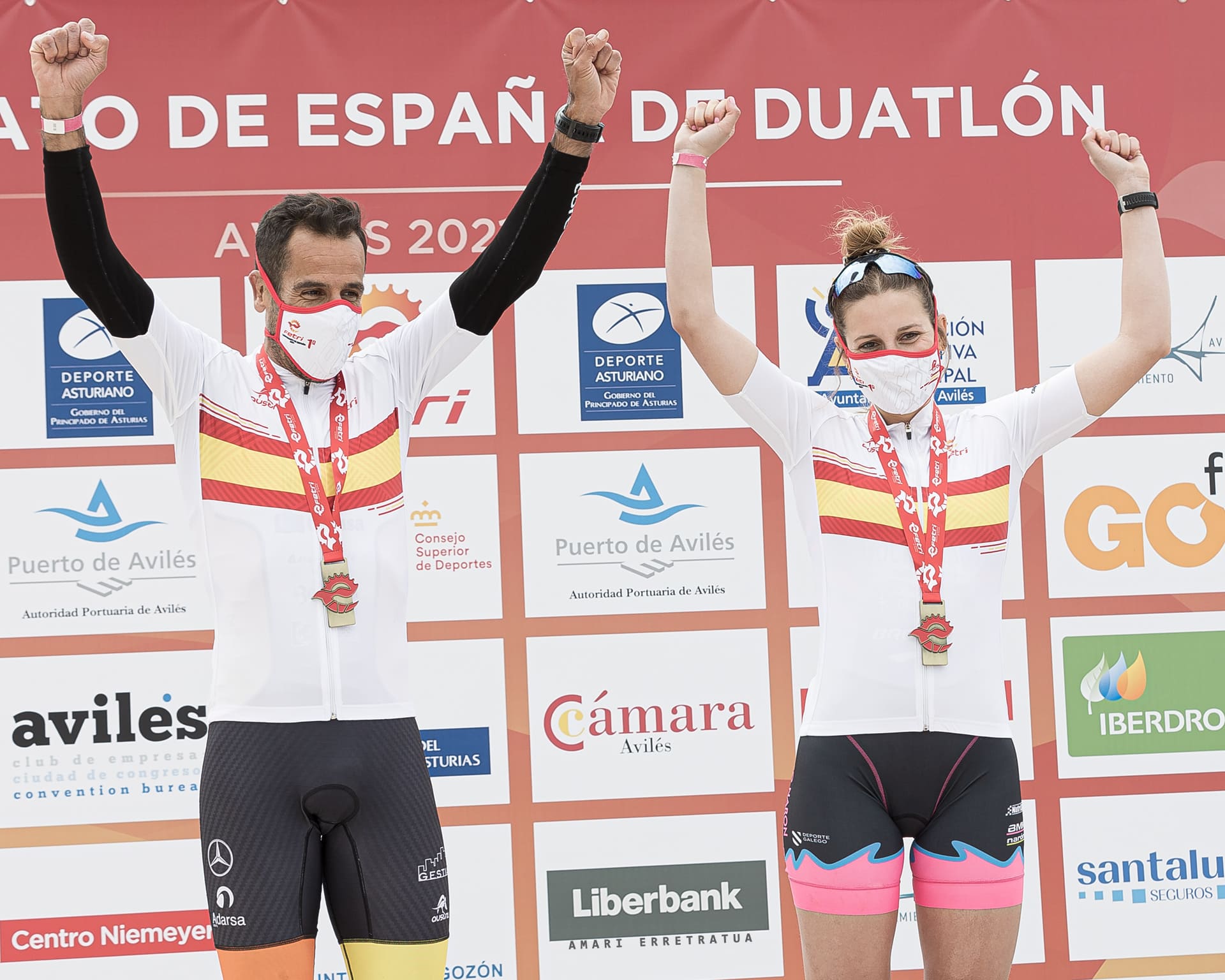 Espléndidos, Emilio Martín y Sara Guerrero en el pódium. Sara Guerrero logró el título de campeona de España élite de Duatlón con un soberbio segmento de ciclismo y una gran carrera final, marcando un tiempo de 1:03:06.