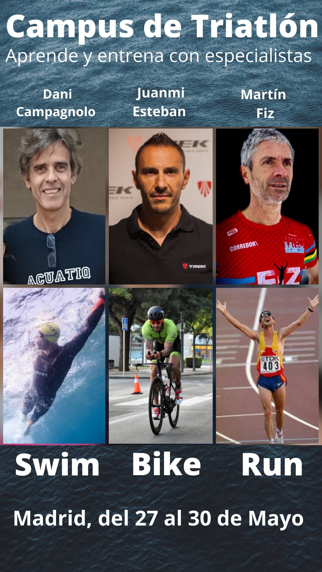 Cada disciplina será trabajada de la mano de un equipo de excepción que reúne a tres especialistas, encabezado por el campeón del mundo de atletismo Martín Fiz; Juanmi Esteban, triatleta profesional que se encargará de la parte de ciclismo; y Dani Campagnolo, el director técnico que impartirá la disciplina de natación. No obstante, existe la posibilidad de asistir solo a la disciplina que más os interese.