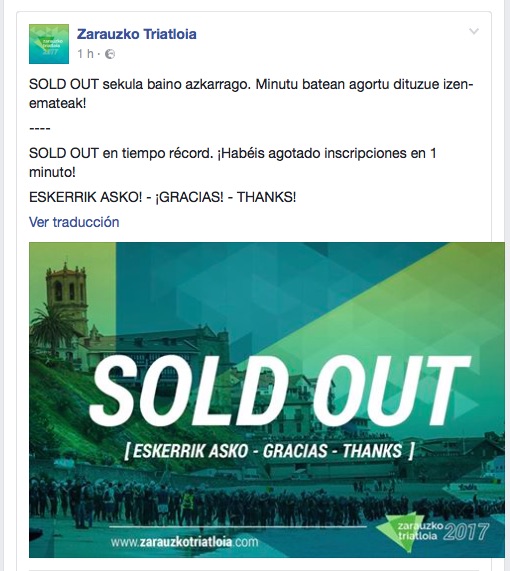 La XXXI edición del mítico Zarauzko Triatloia pasará a la historia ya antes de disputarse. Como habíamos informado, esta mañana a las 10h se abrían las inscripciones. Y han durado exactamente 1 minuto. De auténtico récord.