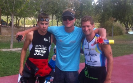 Los dos triatletas catalanes se han concentrado esta semana en la localidad catalana de Calella con su equipo, el Durance Triathlon, de origen francés. Tanto Albert Moreno como Marcel Zamora compiten en las próximas semanas, pero como cada año, realizan un stage en Calella con miembros del equipo francés.