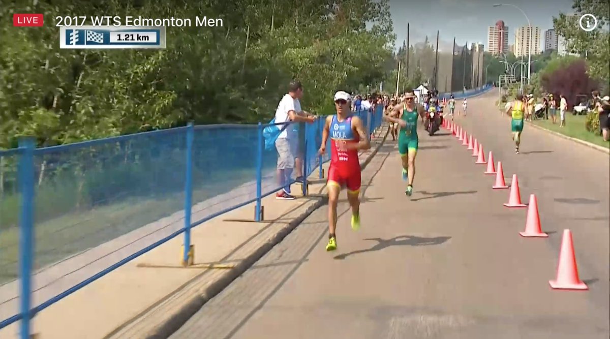 Por suerte el australiano no pudo aguantar el ritmo y el ataque quedo en un farol que recibió la contundente respuesta de nuestro Mario Mola que sentenció la carrera en el último kilómetro para entrar con una cómoda diferencia por el arco de meta de Edmonton y afianzar así su condición de líder mundial. Birtwhistle fue finalmente segundo pero ya a 10 segundos de Mario y tercer puesto lo peleó Richard Murray arrebatándoselo al británico Jonhy Brownlee, cuarto.