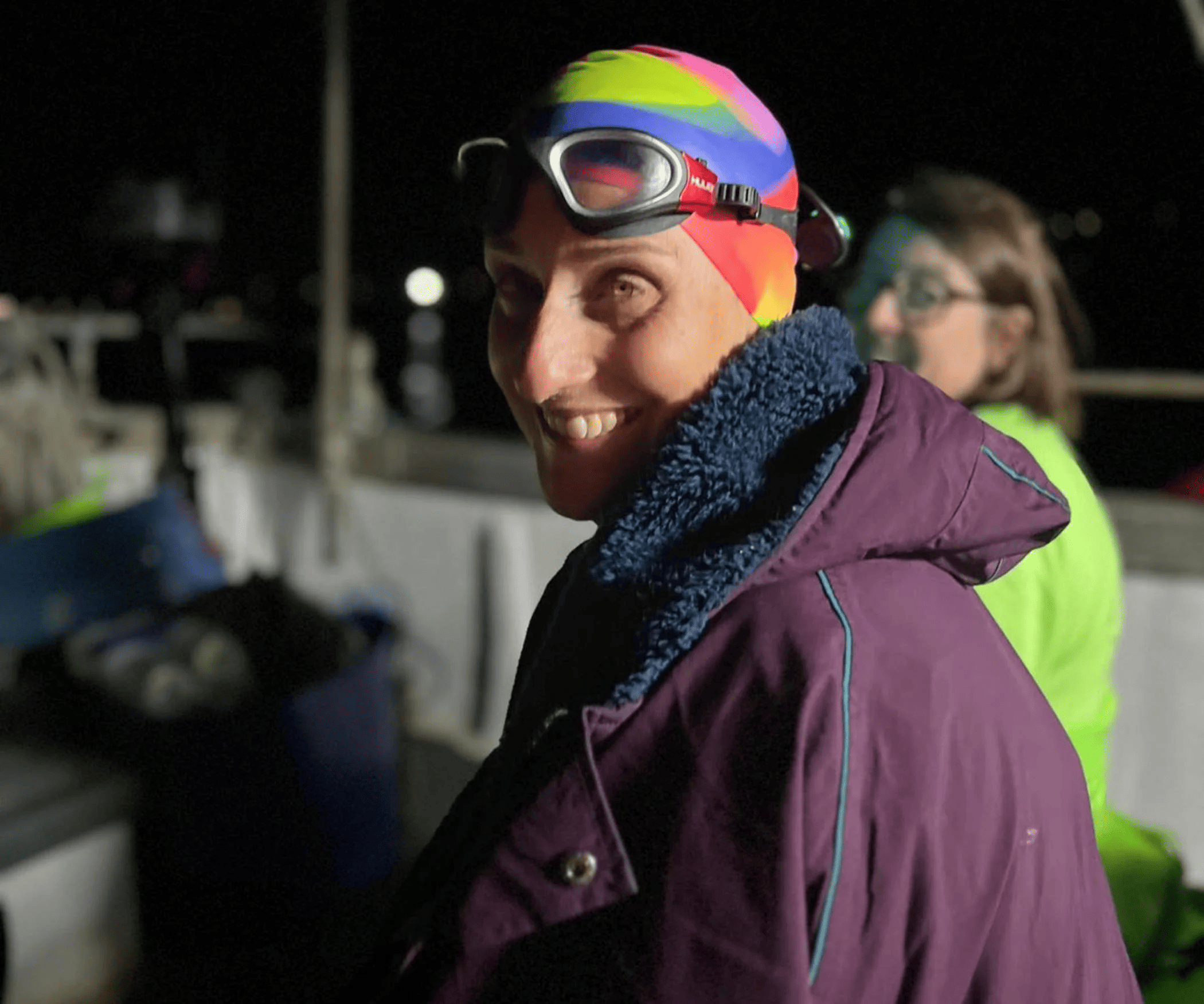La solución inicial fue que su esposo, Richard, la guiara desde un kayak y de hecho funcionó bastante bien para algunos eventos, pero el problema es que no podía oírlo. “Podía captar algunas palabras cuando me giraba para respirar, pero no lo escuchaba ni entendía, por lo que, al no poder darme ninguna indicación, en cierto modo era como quedarme sola“.