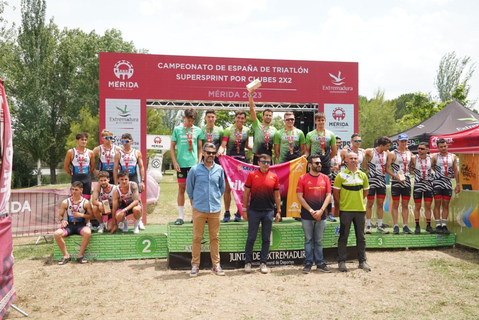 Náutico de Narón femenino y Saltoki Trikideak masculino se impusieron en la Primera División del Campeonato de España de Triatlón SuperSprint por Clubes 2×2, prolongando su racha triunfal del fin de semana en el caso de las gallegas, y alcanzando el primer título del año los navarros. La tercera jornada de la Liga Iberdrola y la Liga Nacional de Clubes de Triatlón se celebró en Mérida dando continuidad al gran ambiente del sábado en el parque de las Siete Sillas, con los circuitos a la vera del Guadiana y el paso del ciclismo por dos puentes emblemáticos emeritenses, el Puente Romano y el Puente Lusitania.