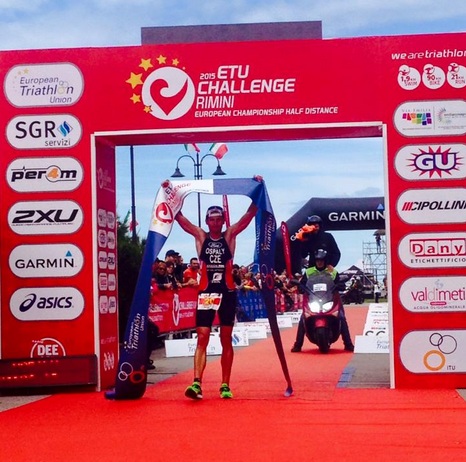 Un Challenge Rimini que coronó al veterano triatleta checo Filip Ospaly, que se llevó la victoria y se proclamó campeón de Europa de la distancia. Segundo fue el italiano Giulio Molinari y completó el podio el belga Bart Aernouts. Dos italianos, Molinari y Ceccarelli, han dominado la segunda parte del sector ciclista, que contaba con una importante subida al Monte Grimano. Ambos han llegado primeros a la T2, con casi dos minutos de ventaja sobre Ospaly. La carrera a pie dictaría sentencia y el checo, muy fuerte en este tercer sector, ha cogido el liderato a falta de siete kilómetros para el final. Así pues, Ospaly ha vencido a la armada italiana, que corría en casa. No hay que olvidar que Molinari batió a Frodeno y Kienle en el Cannes International Triathlon del pasado mes de abril.