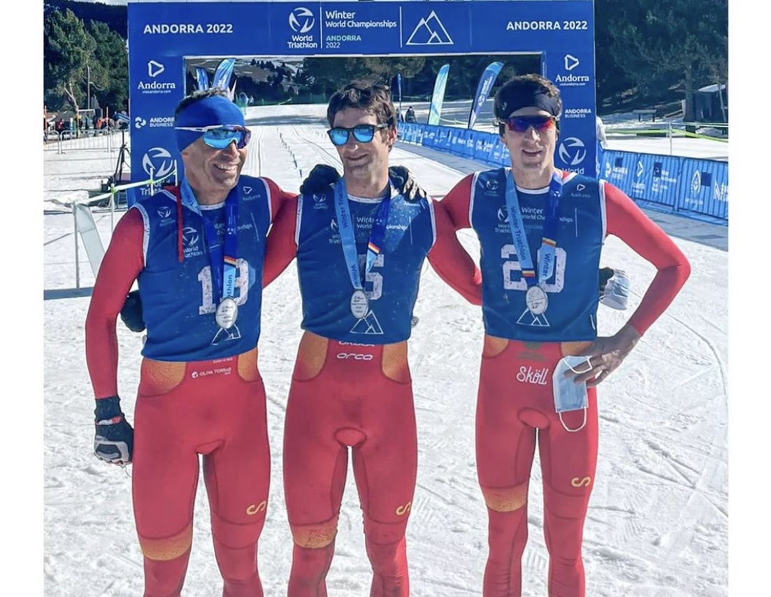Esta vez en el Mundial de triatlón de Invierno, con un doble sector de 4km de carrera, 6’4km de BTT y 6’2km de esquí de alpino.