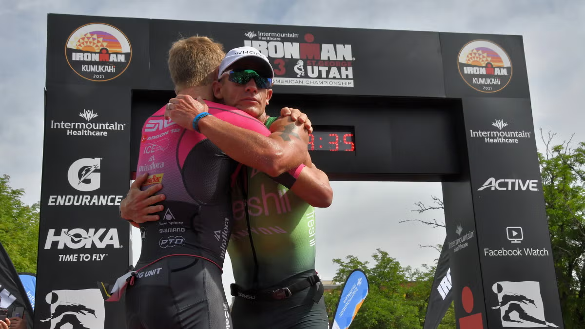 Sam Long Lionel Sanders en una edición anterior de Ironman 70.3 St. George. Imagen: Ironman.