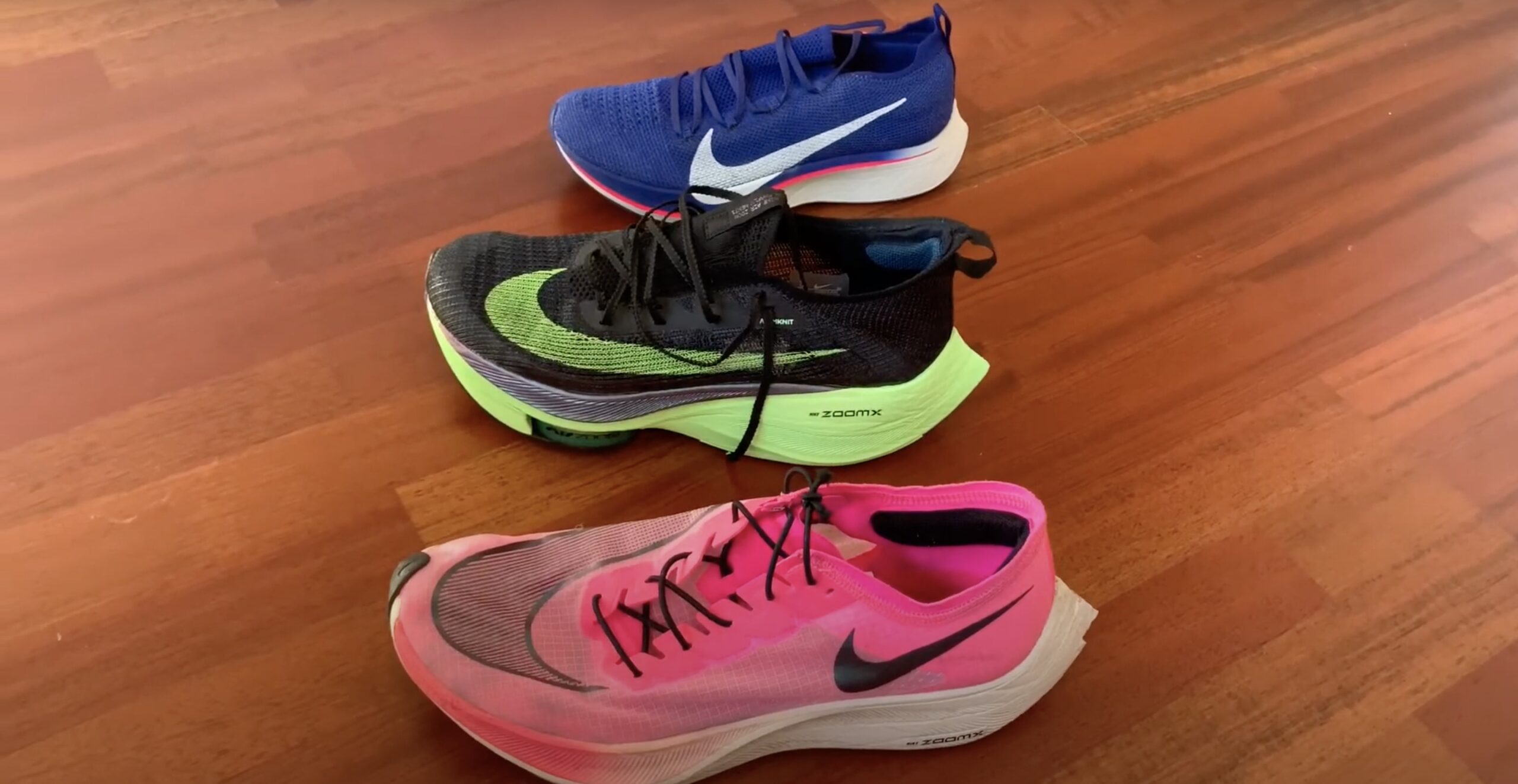 Jaime Menéndez de Luarca se encarga de hacer la comparativa pertinente entre las Vaporfly 4%, las Vaporfly Next% y las nuevas Alphafly, dando estas últimas un relevo un tanto descafeinado a las Next%, ya que el modelo que finalmente ha salido a la venta ha tenido que adaptarse a la limitación de 40mm de grosor para la suela que marcó la IAAF.