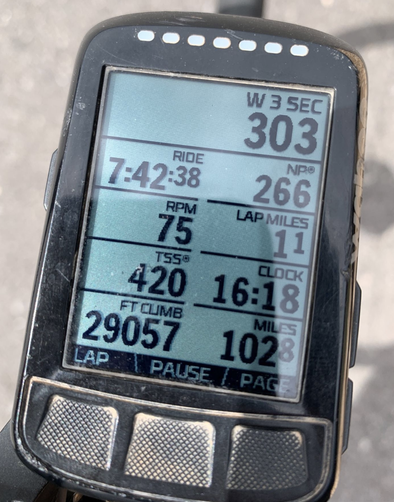 «He intentado mantener una potencia media de 270-280 vatios en cada subida» explicaba el propio biker. «Ha sido una de las cosas más duras que he hecho nunca en bicicleta. A la par con el White Rim» comentaba en referencia a otro recorrido, en este caso de mountain bike, que se está haciendo famoso también dentro de los intentos de lograr el mejor FKT.