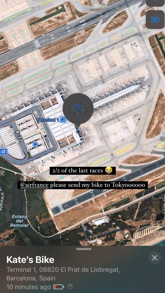 En esta ocasión ha sido Kate Waugh la que se ha visto afectada por ello y no perdía la oportunidad de denunciarlo en redes. Con un simple y claro “Air France envía mi bicicleta a Tokio” urgía a la aerolínea francesa a que solucionase su problema. Y es que el tiempo apremia para la británica que – si nada lo impide – tomará parte de las Series Mundiales de Yokohama en la madrugada del viernes al sábado 11 de mayo (uso horario europeo). Con muchas de sus compañeras de profesión ya en la ciudad nipona inspeccionando el recorrido y aclimatándose, que su bicicleta permanezca en el Aeroport del Prat de Llobregat le supone un enorme contratiempo.