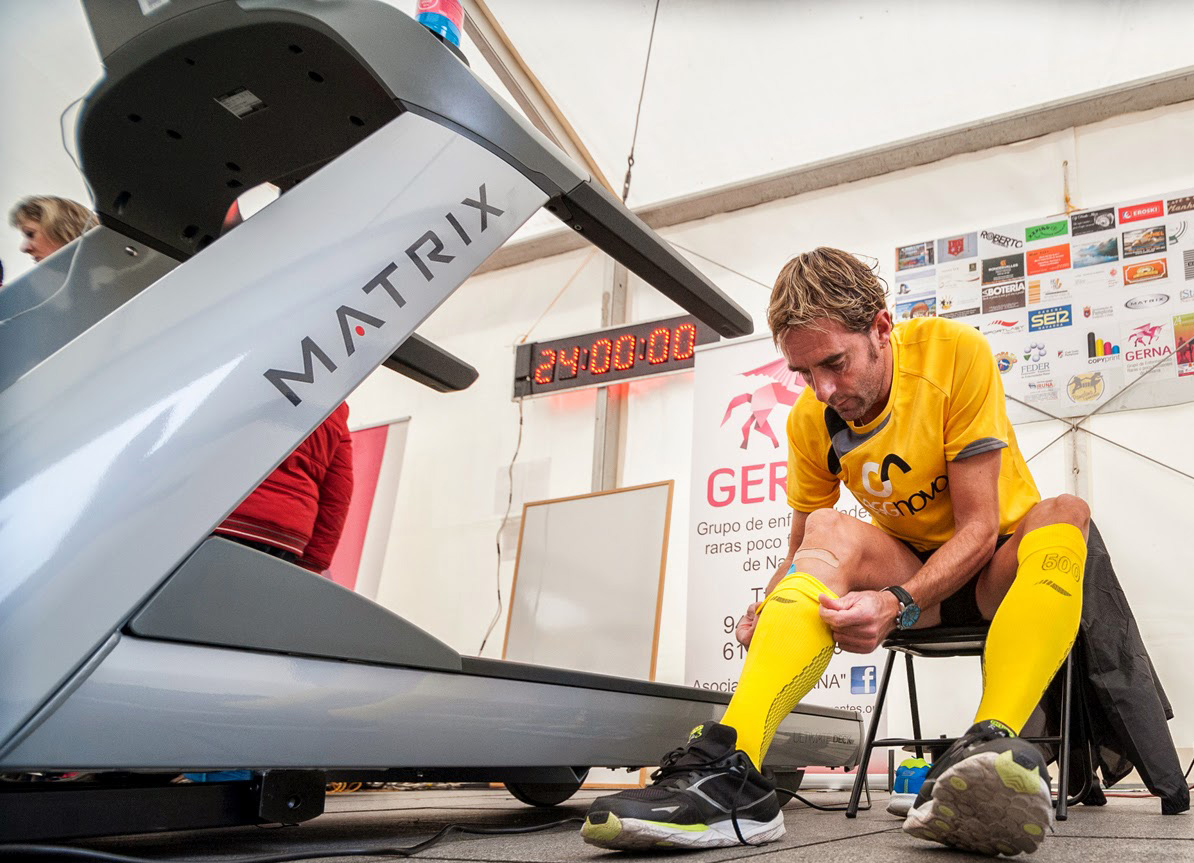 Horas y horas, incansable. El popular ultrafondista Ricardo Abad realizará este mes de septiembre en la Feria Internacional de la Bicicleta de Madrid, un triatlón de larga distancia en un pavellón indoor. De la mano de Skechers, nadará 3,8 kilómetros en una piscina de corriente, pedaleará 180 kilómetros en un rodillo y correrá 42 kilómetros sobre una cinta de correr. Será el primer ‘Ironman’ que se realizará en IFEMA, sede de Unibike 2015 y que a su vez también acogerá un area destinada exclusivamente al triatlón. Abad preveé que consumirá más de 10.000kcal y que perderá más de dos kilos de peso al realizar el triatlón de larga distancia indoor.