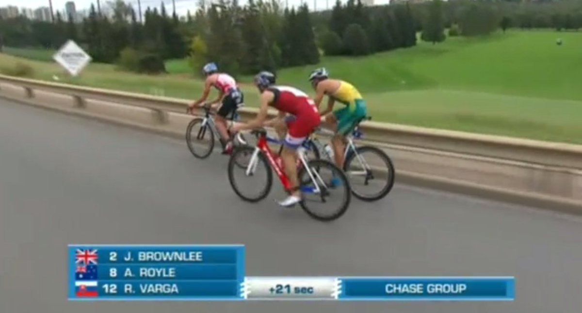 J.Brownlee, A. Royle y R. Varga lideran con una ventaja de 21 segundos. Chente tirando en el grupo perseguidor y Mario Mola en un tercer grupo.